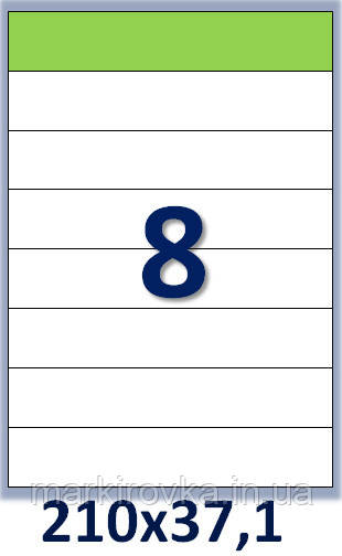 Етикеток на аркуші: 8 шт. Розмір: 210х37,1 мм.
